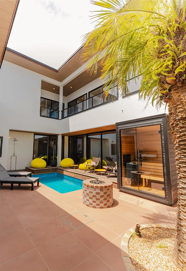 リビングから一歩踏み出せば、そこは誰にも邪魔されない、完全プライベートな水辺の楽園。子どもたちの笑い声が弾け、カップルはロマンチックな時間を過ごす。家族や仲間と、気兼ねなく水と戯れる贅沢なひととき。忘れられない思い出は、この特別な場所から生まれます。