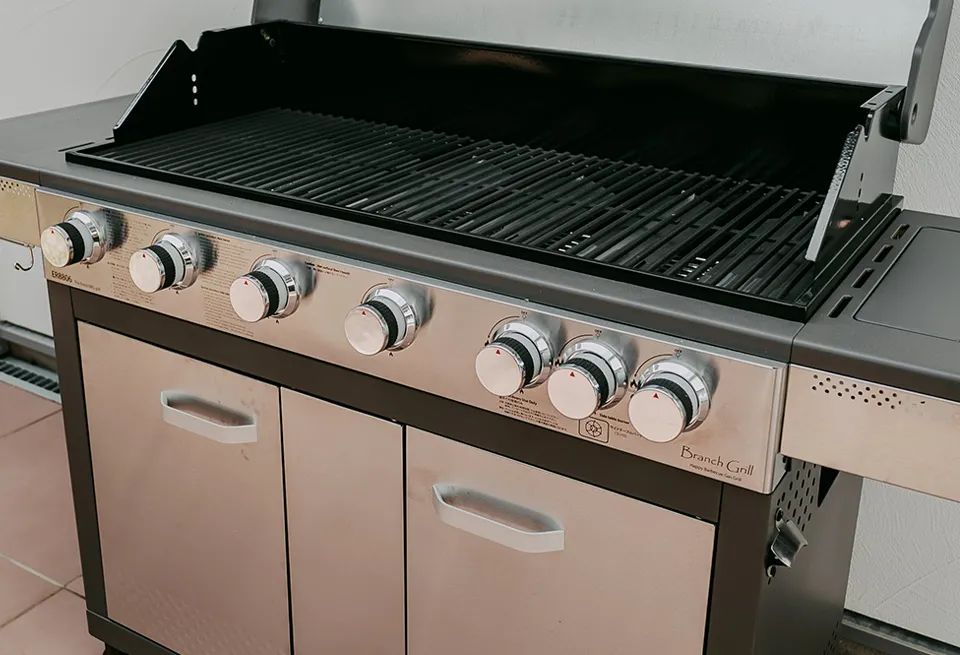 地元食材を豪快に焼き上げ、家族や仲間と語らい、とことん笑う。大型ガスグリルは、大人数の調理も簡単。面倒な火起こしは不要です。