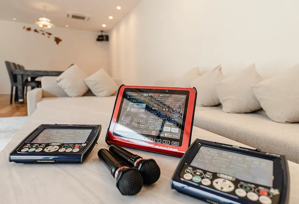 心ゆくまで歌い、笑い、絆を深める、プライベートカラオケ。一棟貸切だからこそ実現できる、誰にも気兼ねなく楽しめる贅沢な時間です。
