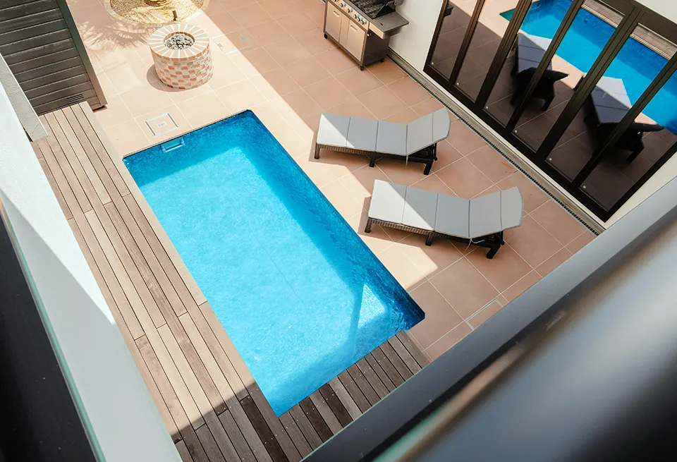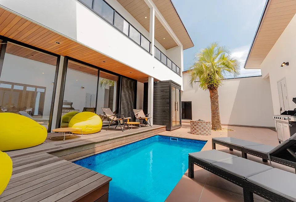 夏の時期はもちろん、心地よい晴れの日には、家族や友人とプールで過ごすひとときが最高のレジャーに。